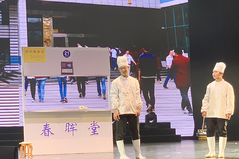 《春晖堂的故事》是根据海安中学真实事件改编的原创小品,讲述了海中学子诚信刷卡的故事。小品既反应了同学们正直阳光的优秀品格,也表现了海中后勤人员“一切为了学生”的高尚情怀。剧本的创作、导演、表演,均为本校师生。老师和同学们利用工作课余的休息时间撰写剧本、设计道具、配置音效、排练小品。在与海安市文化艺术中心、海安市歌舞剧团等单位的专业演员同台竞技演出时,参演同学既虚心地揣摩专业演员的表演技巧,又有着“初生牛犊不怕虎”的精神,尽最大努力去演绎自己的角色。