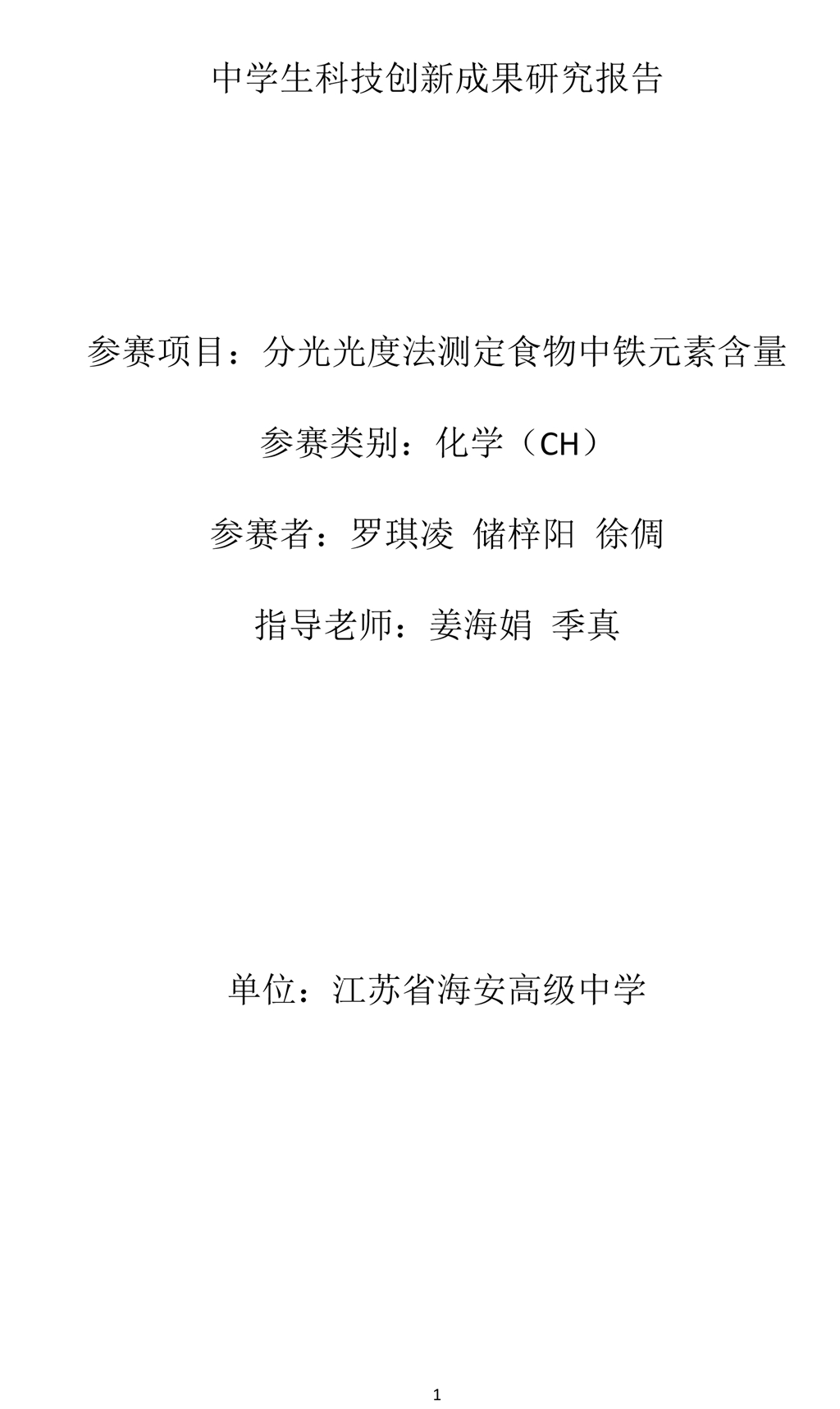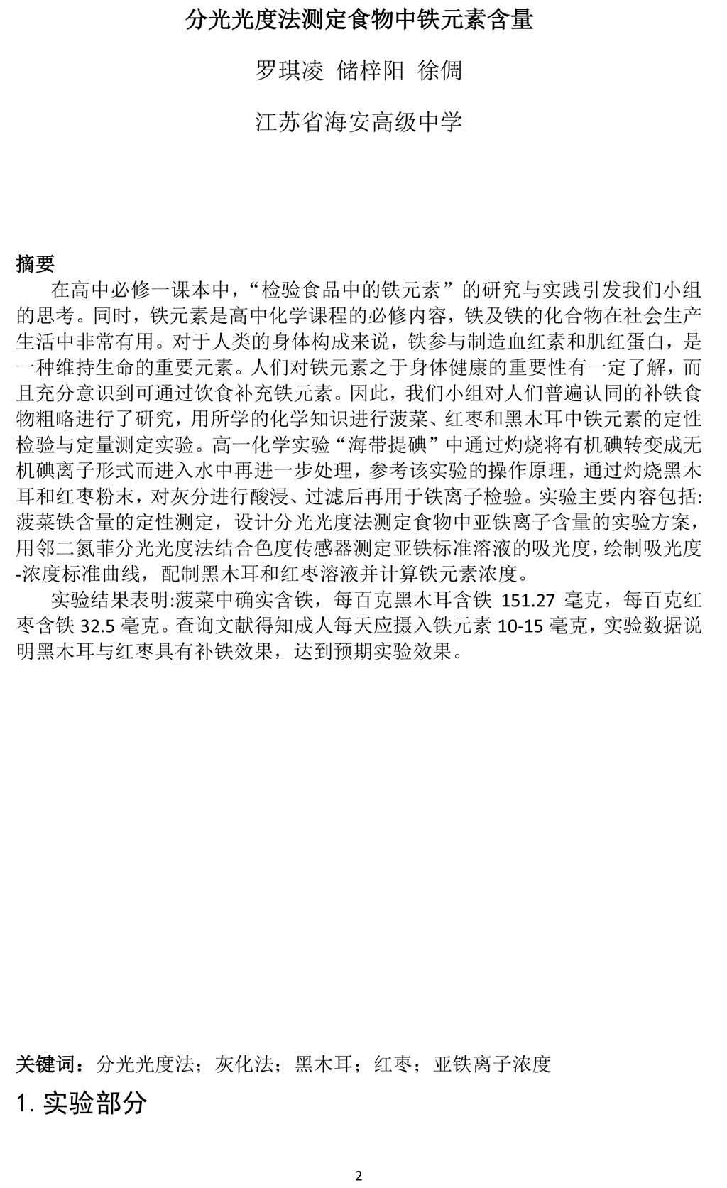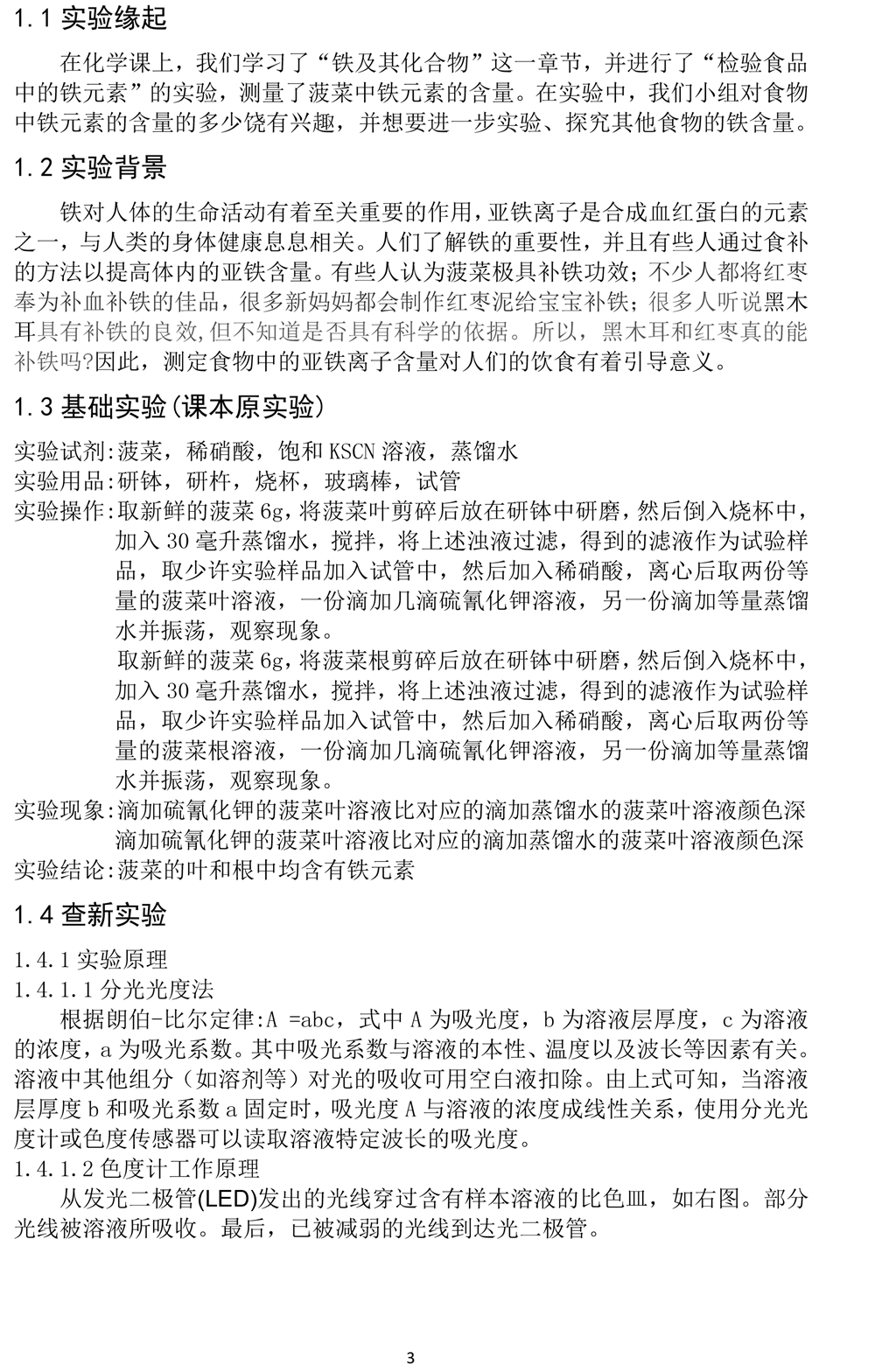 【创新成果研究报告】分光光度法测定食物中铁元素含量