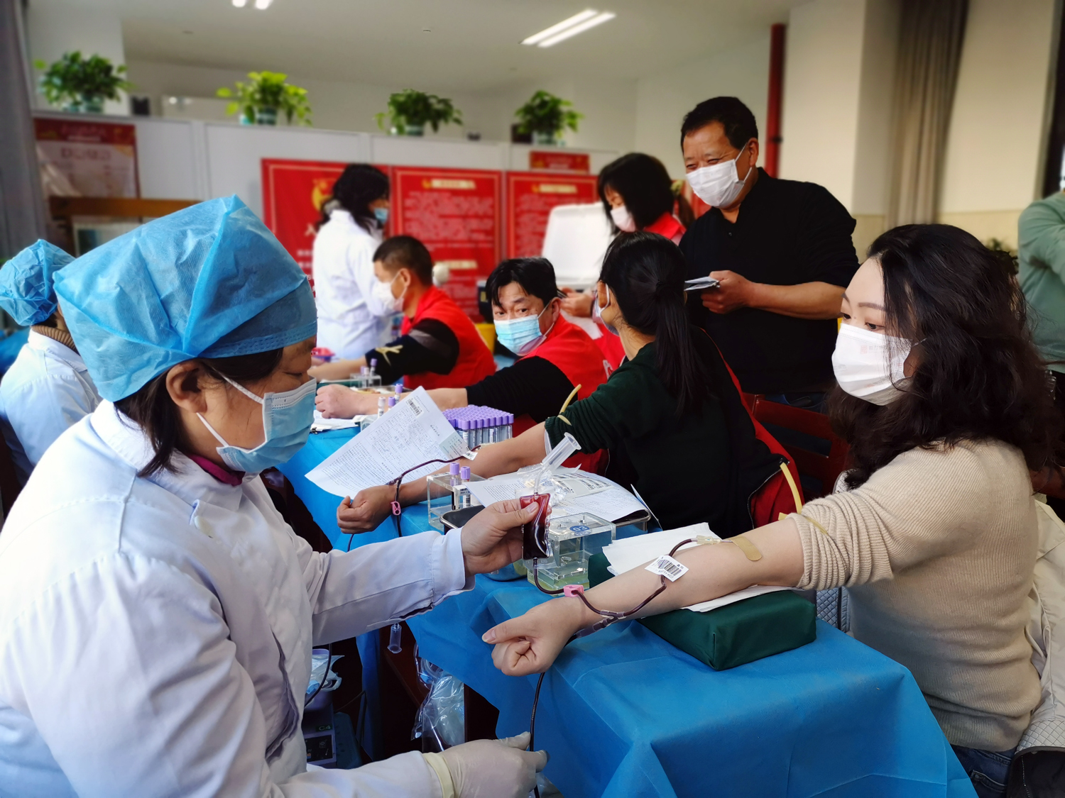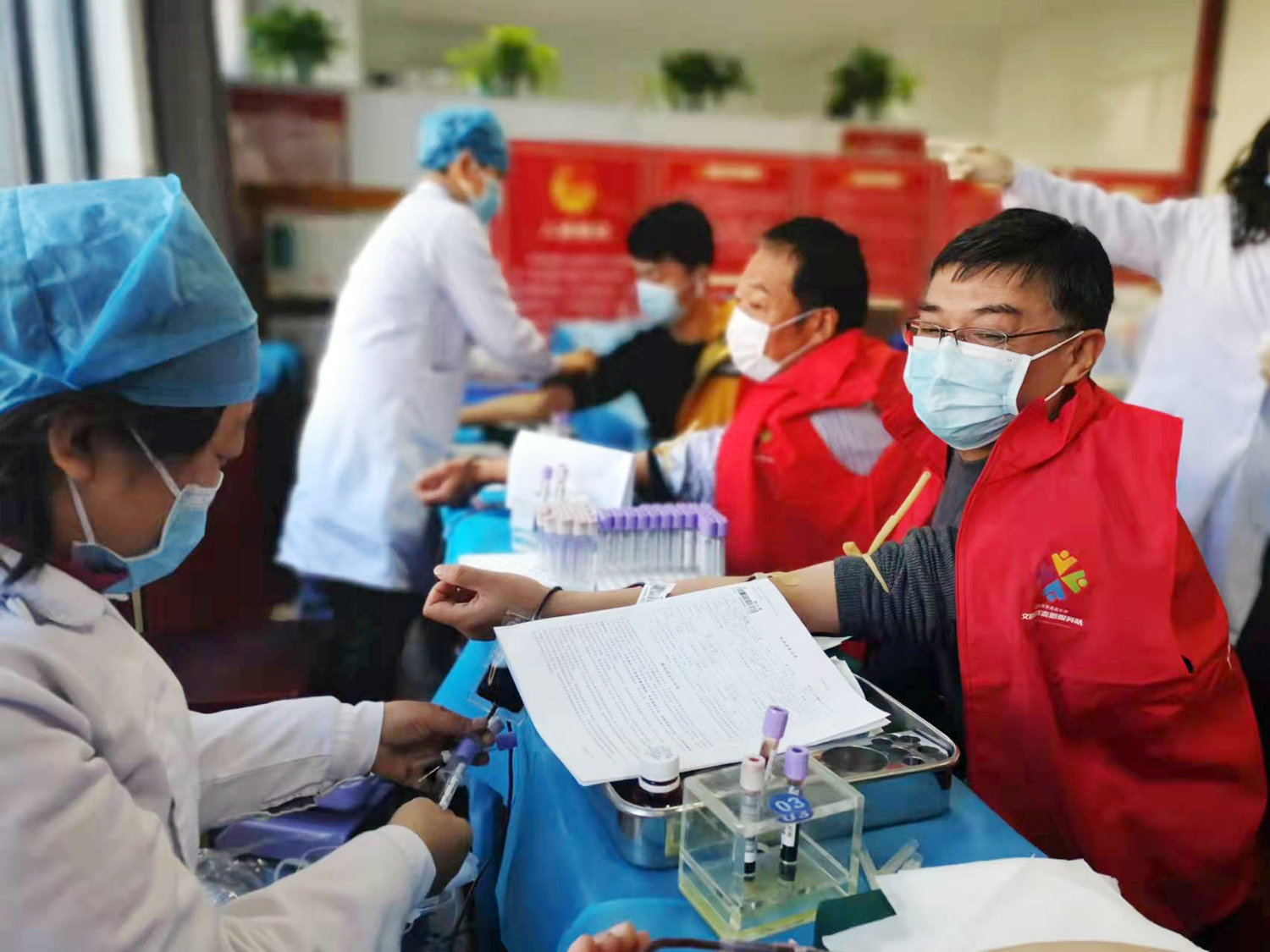 三个多小时里,60多位志愿者井然有序地完成了登记、复核、验血、采血的献血流程,51位志愿者通过体检初筛,总计献血15250毫升。