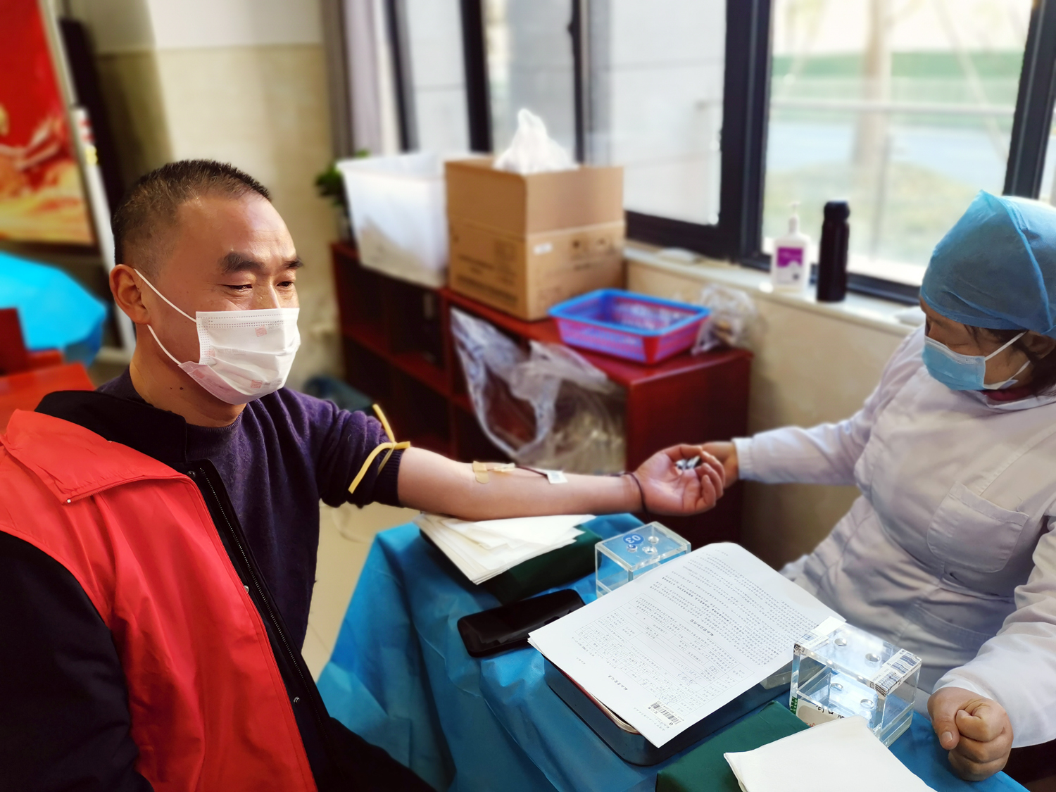 12月1日,寒潮侵袭下的海中校园暖意融融,作为临时献血屋的海中团校人流络绎不绝,他们有的刚上完一节课立即赶来,有的一献完血就匆匆赶去上课,有的身上还带着食堂灶头的菜香……他们来自于学校的各个岗位,他们怀揣着共同的愿望“无私奉献热血,点燃生命希望”。