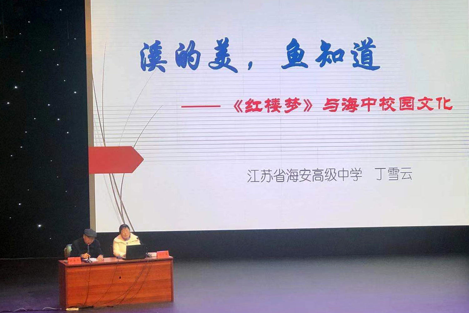 12月7日下午,由江苏省红楼梦学会、仪征市红楼梦学会联合主办的“江苏省红楼梦学会暨仪征市红楼梦学会2019年年会”在仪征市广播电视台演播大厅隆重举行。海安中学3位教师受邀参加年会,丁雪云老师在年会上做关于“《红楼梦》与海中校园文化”的主题报告。