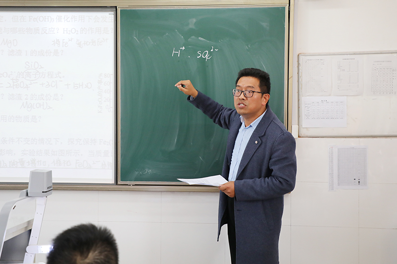 研讨活动首先举行了简短的开幕式,名师工作室导师杨斌致欢迎词,市教师发展中心研训部朱永侃主任介绍了本次活动的具体安排。随后,省海中王志春老师和曲塘中学崔恒祥老师分别开了“化学工艺流程题解题策略”的两节研究课,然后进行了深度的研讨活动。省海中朱安健老师、曲塘中学崔恒祥老师和名师工作室徐志宏老师分别对两节示范课做了点评。