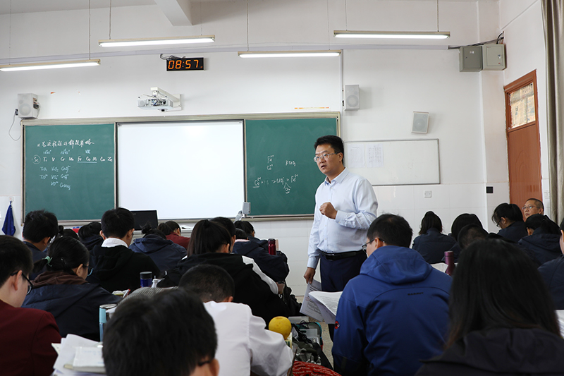 名师工作室领衔人杨斌副校长分别对两节示范课做了评价,认为两节课分别从外显和内隐的角度体现了化学学科的核心素养,突出了证据推理与模型认知,聚焦于问题导向。然后围绕“基于问题导向的化学课堂研究”,从“为什么开展”、“如何实施”以及“教师应具备怎样的素质”三个方面做了专题讲座,强调了在解决问题的过程中不仅要有师生对话,更要有生生对话,只有学生经历了主动学习甚至能够向同伴讲解知识的过程,学生的课堂获得留存率才会提高。