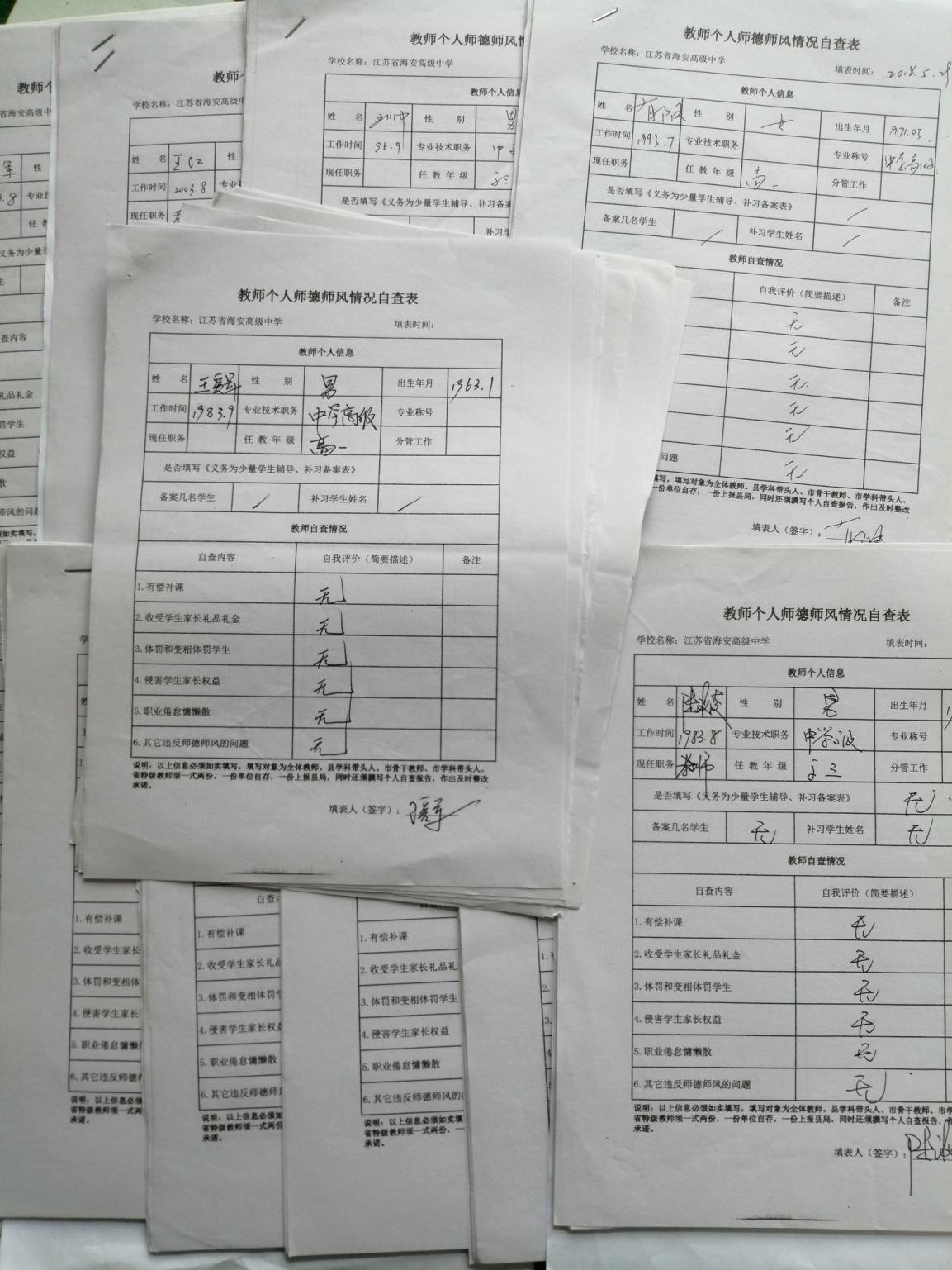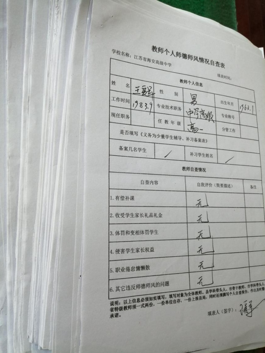 海安中学师德师风自查表