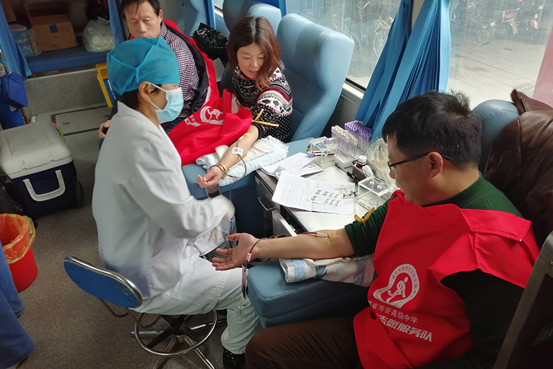 清晨七点半,学校体艺馆和市人民医院血库的工作人员早早来到学校体艺馆接待室布置好了献血现场。教职工们络绎来到了现场,在医务人员和校内志愿者的引导下,按序进行登记填表、测量血压、血液初检等环节,通过严格的筛选,符合献血标准的志愿者们自豪地捋起袖子,献出自己的一份爱心。志愿者们有的是初次献血,有的已是多次参加献血活动,大家都为能用热血回报社会,用行动帮助他人而感到幸福和光荣。