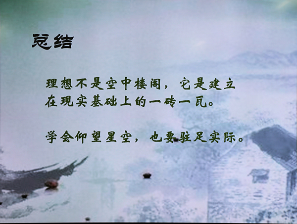 首先,高二17班以“诗与远方”为主题为大家上了班会观摩课。诗朗诵、小组讨论、情景剧表演、你问我答,各步骤环环相扣,逐步深入,帮助同学们深刻理解志存高远和脚踏实地之间的辩证统一关系。班主任龚松兵老师做了总结。董裕华副校长对班会课做了精彩点评。