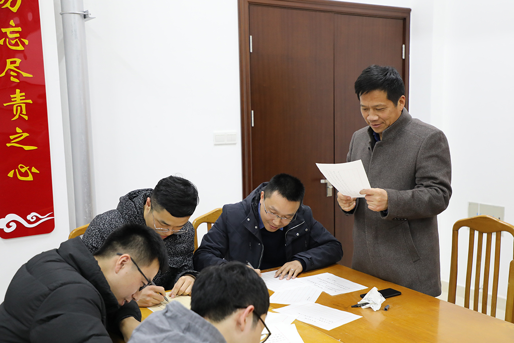 本次青年教师现场书法比赛是2019年省海中“家国情怀”主题师生书法比赛中的一部分,比赛前,工会和教研室做了充分的准备工作,公布了比赛使用的关于廉政建设、师德建设、创文创卫三个方面的参赛内容,提前安排大家学习,同时,工会为每一位老师准备了专用书法笔和书法信笺。