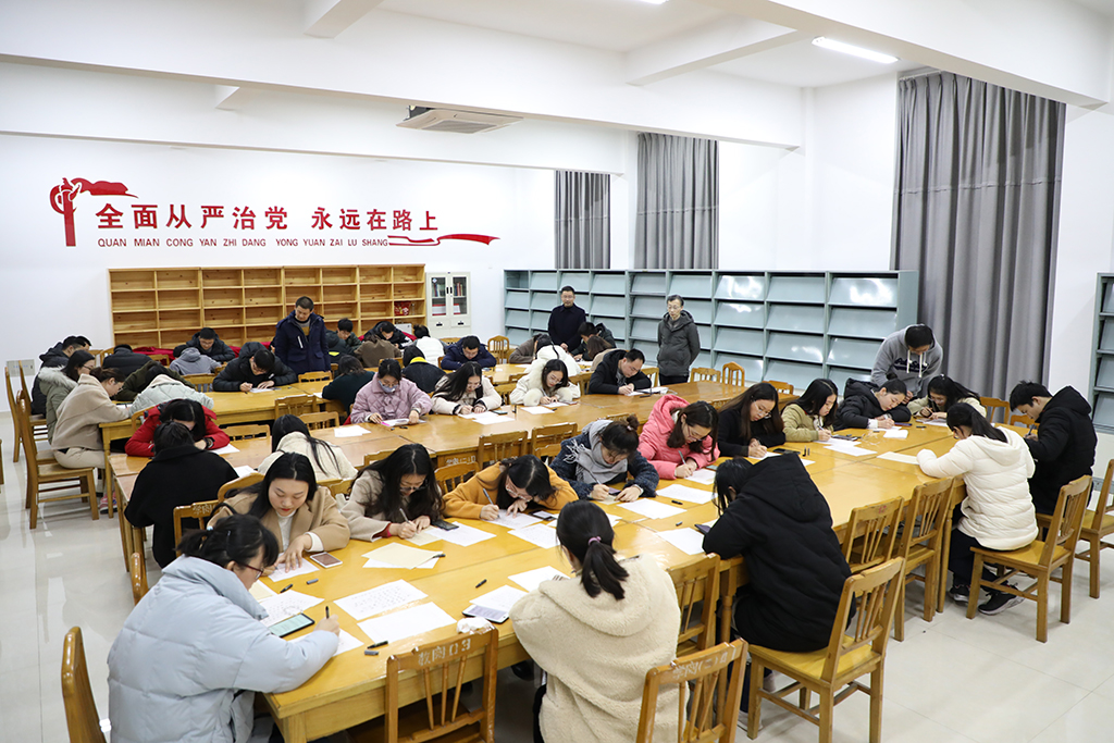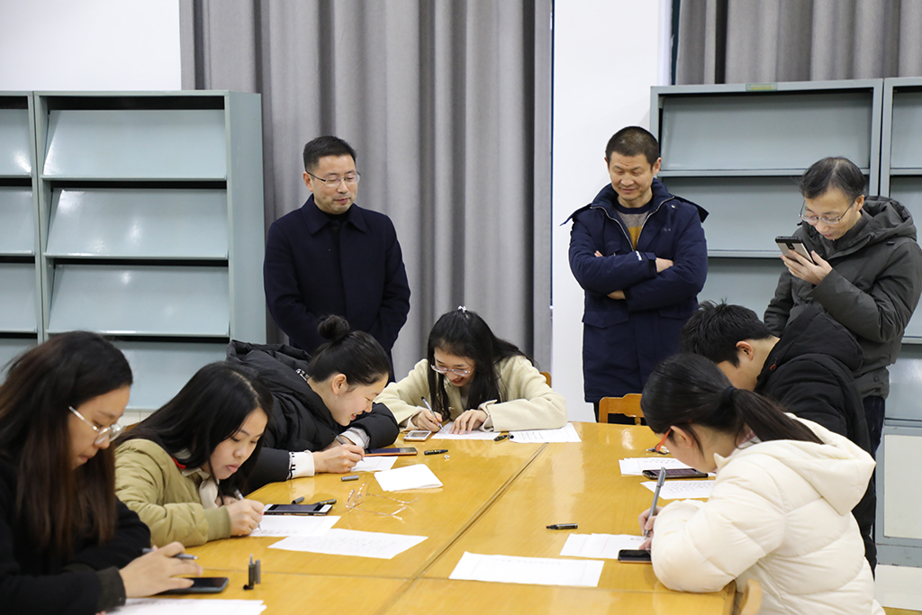 12月14日下午,江苏省海安高级中学工会、教研室共同组织,在奥林匹克楼举办了2019年青年教师书法现场比赛,共49名35岁以下的青年教师参加了比赛。副校长董裕华、周峰出席了比赛,教研室主任周正龙和副主任王帅全程参加并组织了活动。