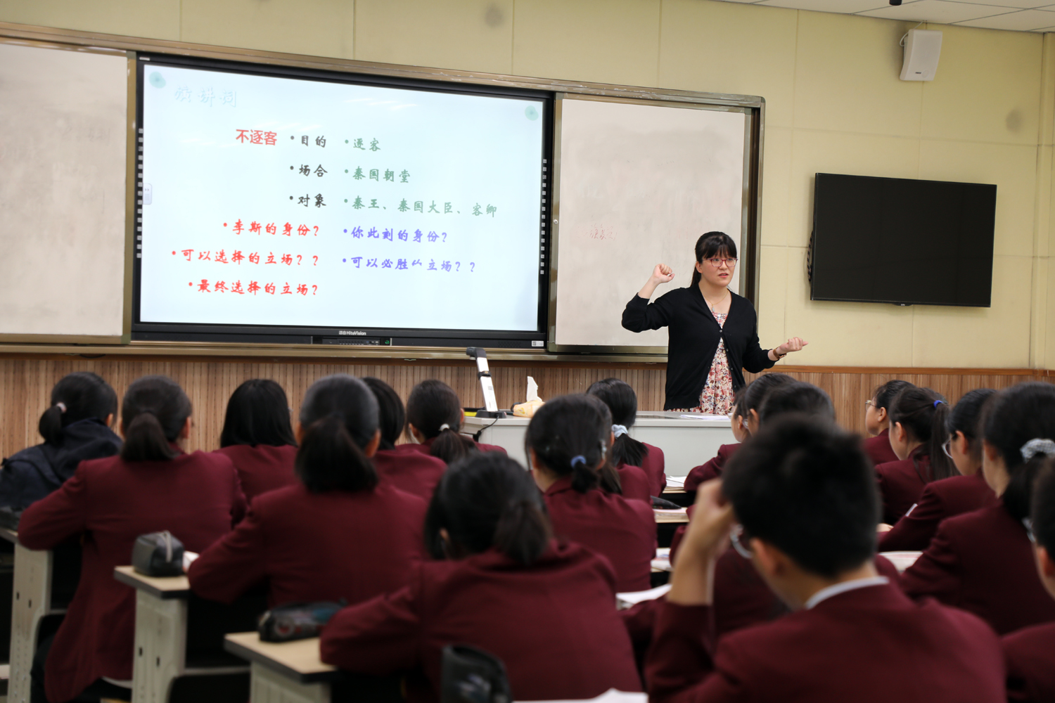 活动主要由“上研讨课”“听课评课”“学科讲座”三部分组成。海中团委书记许尧老师在录播室开设了一堂《如何确定立论角度——以必修下册第五单元为例》的教学课,依据课文《谏逐客书》设置写作情境,以学生原创习作为教学材料,引导学生从立场、事理逻辑、创新三个角度选择演讲词的立论角度,以解决学生当下演讲稿写作中存在的问题。教学注重学生写作思维的引导和培养,给予学生明晰的范式和操作上的指导。