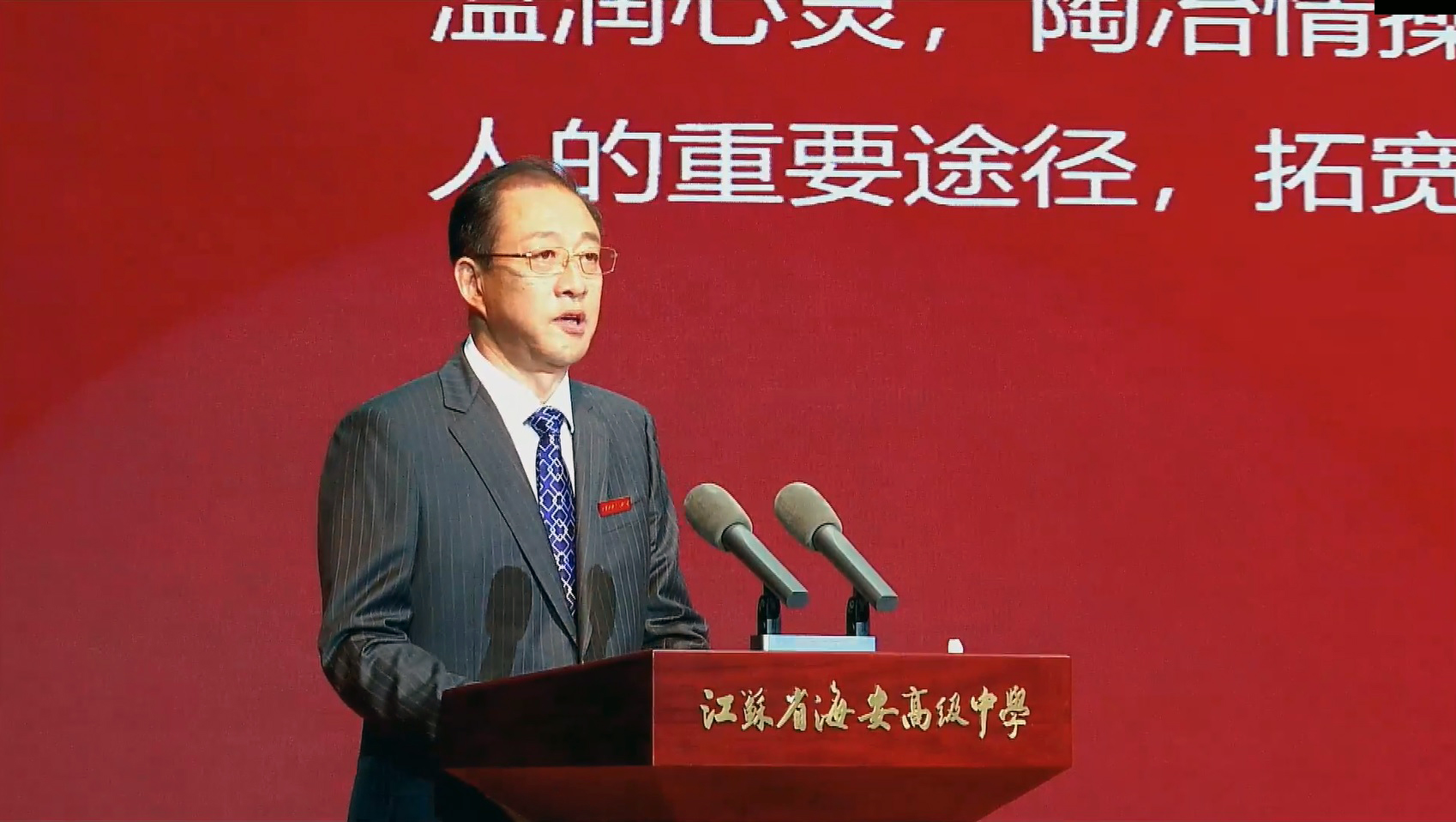 海安中学党委书记、校长吕建做了题为《汇聚红色力量,培育时代新人》的主旨发言。吕建校长发言中展示了海安中学以党建为引领,将红色基因融入学校高品质发展全过程,以内涵发展提升品质,以自觉担当立德树人,以时代精神敢为人先,以宽阔胸襟放眼世界,以特色创新示范引领,积极推进课程改革,培养全面而有个性的一流人才,办学品位不断提升。