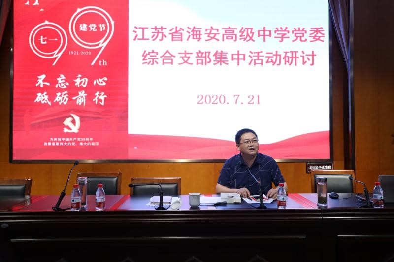 2020年7月21日,江苏省海安高级中学党委在奥林匹克楼一楼第一会议举行了以“同心共创 ,和谐共生”为主题的党员活动日活动。活动由学校党委委员、副校长杨斌主持,党委班子成员以及全体党员参加了会议。