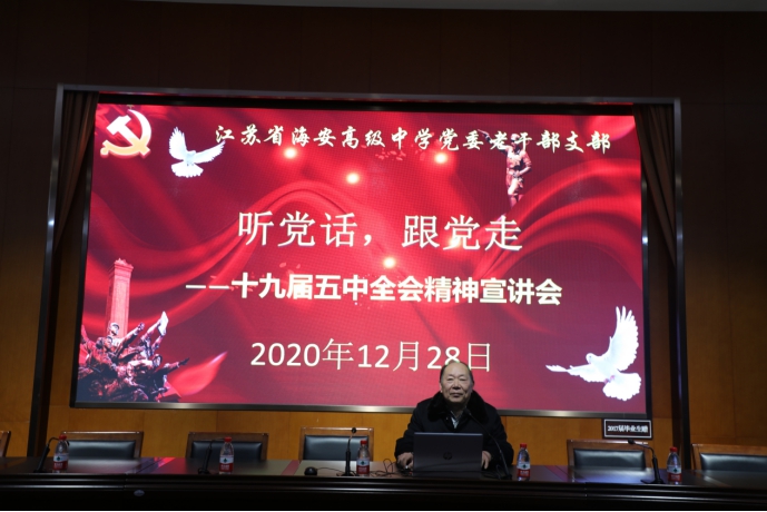 各支部还开展了十九届五中全会精神宣讲和学习心得座谈活动。老干部支部书记吉传勇、理科支部书记罗湘军、文科支部书记周万喜、综合支部书记刘建东分别做了《听党话,跟党走》《制定新纲领,指明新航程》《擘画新蓝图,开启新征程》《立足人民,服务人民》为题的全会精神宣讲。