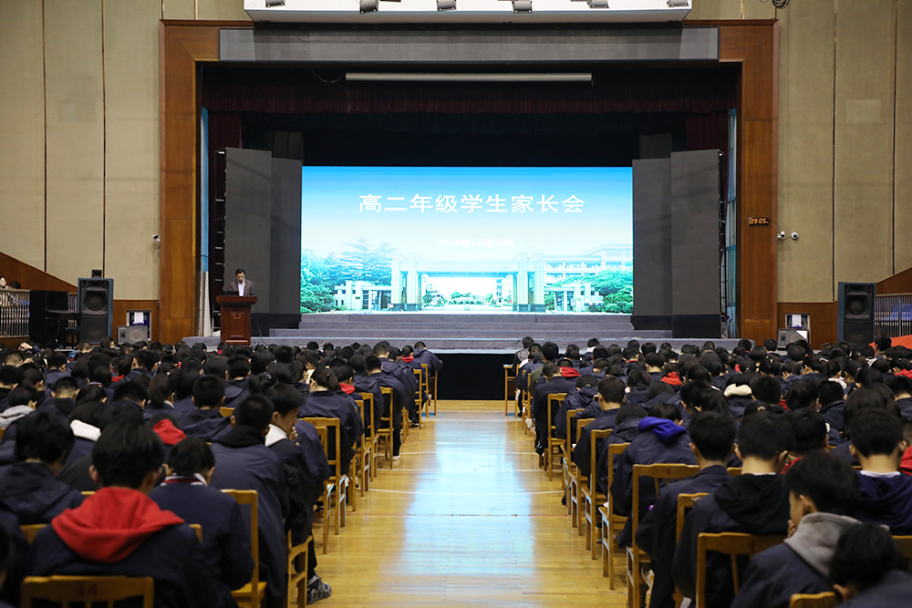 吴校长首先通报了高二年级学生参加数学、物理、化学、信息、生物以及作文竞赛取得的骄人成绩,接着分析了期中考试的情况并对即将举行的合格性考试进行了动员,然后在调查研究的基础上指出了高二年级学生在学习、生活等方面存在的一些典型问题,最后吴校长有针对性的对家长提出了中肯的建议和希望,他希望家长要帮助学生提升信心,少责怪,多鼓励;家长要帮助学生多分析原因,制定计划,确立目标;家长要及时了解子女要求,多交流,多关心;家长要尊重子女个性,多沟通,多理解;家长要做好子女行为表率,多陪伴,多督促;家长要尊重教育的规律,多些学习,多点耐心。