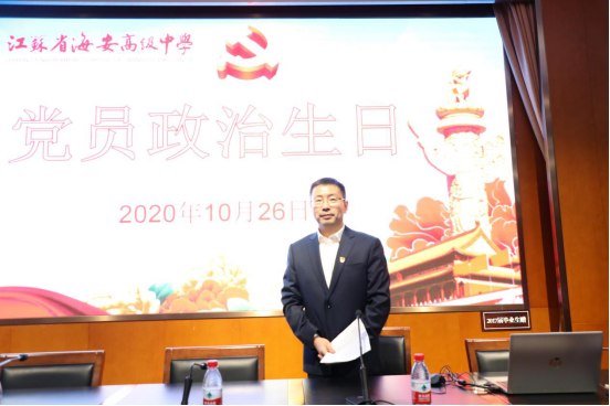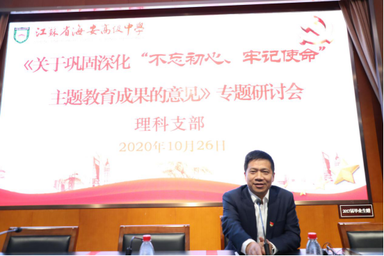 2020年10月26日下午,江苏省海安高级中学在奥林匹克楼一楼第一会议举行了以“坚定理想信念、坚守初心使命”为主题的党员活动日活动。活动由学校党委委员、副校长周峰主持,全体党员参加了活动。