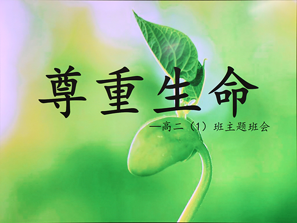 班会课从本班同学原创的一则小漫画开始,通过对漫画的解读和思考,引导大家发掘尊重生命的意义。接着,一出改编自真实事件的情景剧让同学们在放松的同时,开始重新评判我们对其它生命的态度。主持人对主演进行了采访,援引身边的例子,呼吁大家重拾对生命的尊重。本班同学原创的诗朗诵和全场参与的“飞花令”将班会气氛推向高潮,寓教于乐,在轻松愉快的活动中再次突出主题。最后,主持人带领同学们进行了一次遐想,回顾过往,带着对生命的敬重和热爱,迈向美好的未来。