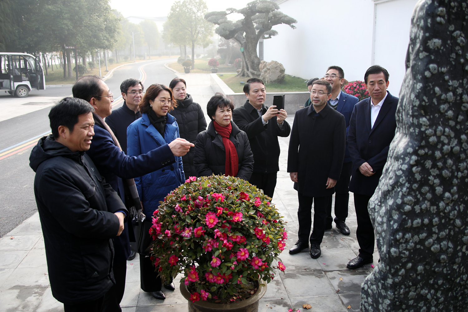 12月12日上午,江苏省教育厅副厅长顾月华、基教处处长陆岳新等领导一行,在海安市教体局局长章晓丽的陪同下来海安中学劳动教育实践基地——乐百年海中农场调研。海中全体班子成员参与了接待。