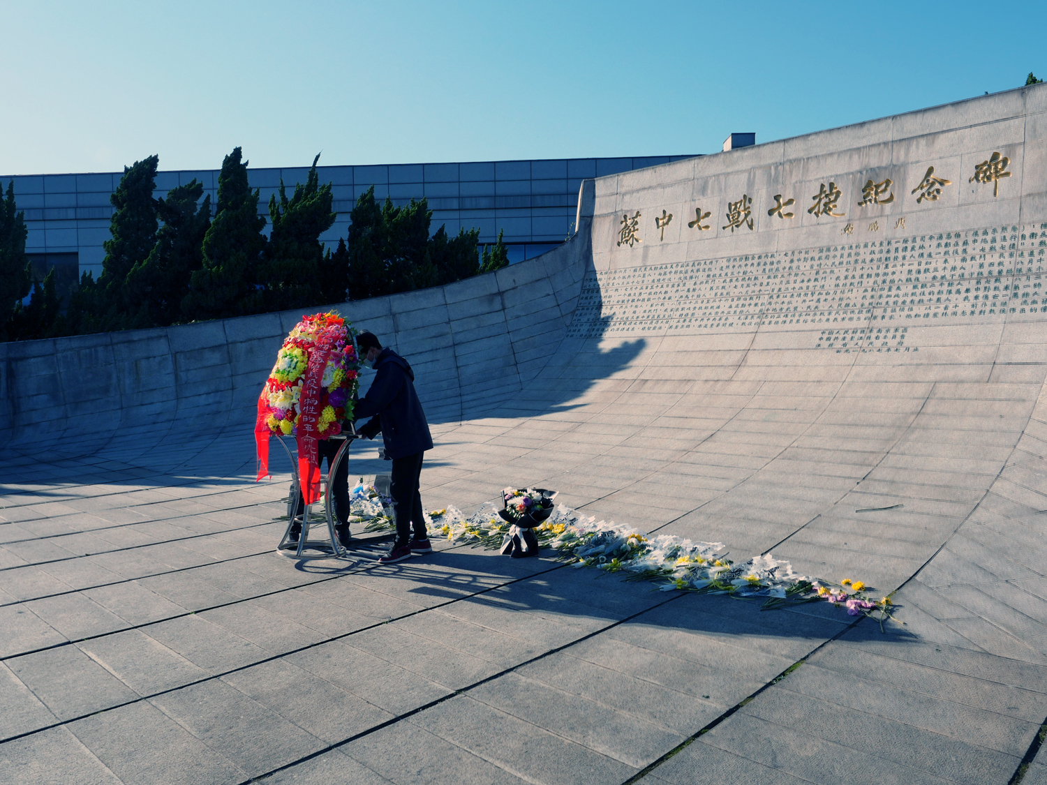 在七战七捷纪念碑前,全场奏唱中华人民共和国国歌,全体师生整齐列队、神情肃穆,向纪念碑敬献花篮,并深深三鞠躬,表达对革命先烈的崇高敬意。