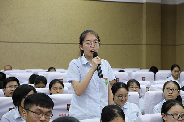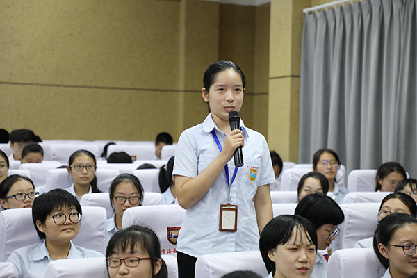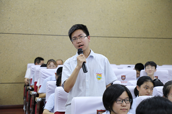 最后,董裕华副校长就学校主题班会工作做了专题辅导。他从“班会的目的”“班会存在的主要问题”“班会的传承与发展”三个方面对新学期主题班会工作作了指导,提出了明确的要求。他指出:“做阳光高中生”主题班会活动是海中传统特色项目,也是海中“阳光高中生”品格提升工程的重要组成部分。班主任要指导学生上好每一节班会课,求实效,重创新,丰富校园文化生活,促进学生能力提升,为学生的终身发展奠基。