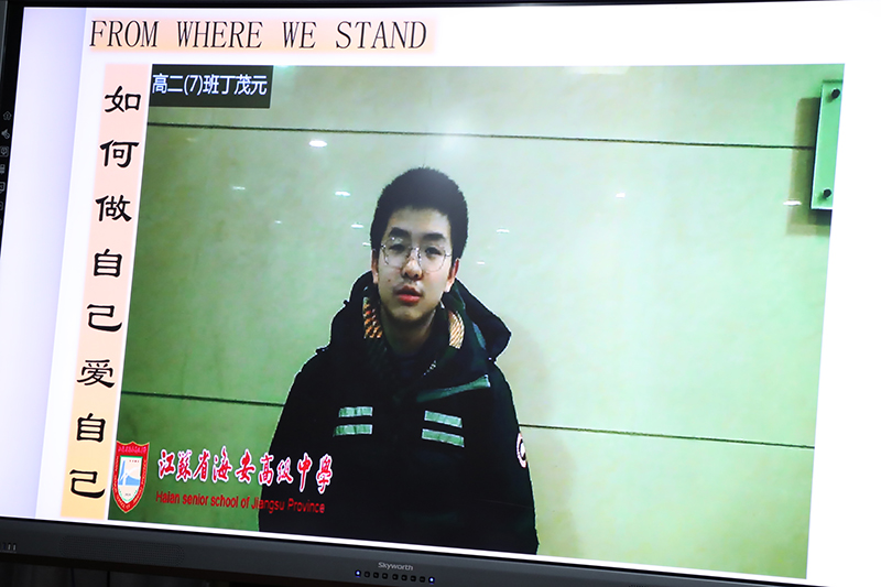 随后,主持人引导大家进入班会课的第二环节:检视自我。一部由傅文劼、董怡辰同学编写,康宸瑀、黄艺、张晶莹、冒奇言同学表演的情景剧《做自己有错吗》将本次活动推向了高潮。此剧讲述了一段小插曲:小康同学在做自己的过程中,忽视了自身性格中存在的缺陷,危害了同桌黄何的利益。此举对他人造成影响,同时自己也十分苦恼。通过此环节,同学们都从角色身上或多或少地找到了自己的影子,感慨颇多。