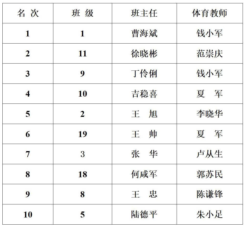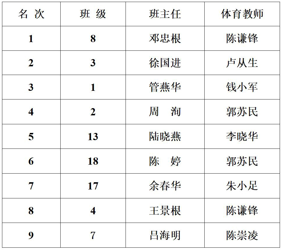 海安中学举行2021年“迎五一”跑操比赛 来源: 发布时间:2021-04-25 00:00:00 浏览次数: 次 【字体:小 大】 2021年4月24日上午,海安中学举行了各年级“迎五一”跑操比赛。赛前抽签决定比赛出场顺序。本次比赛现场评委均由各年级推荐的优秀学生担任,学校领导到场指导。经过激烈的角逐,以下班级获得了流动红旗:高三年级: 高二年级: 高一年级: 精彩图集 分享到: 【打印正文】