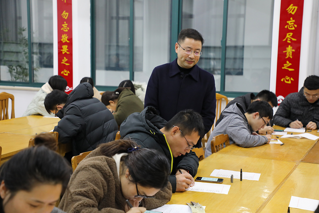 12月14日下午,江苏省海安高级中学工会、教研室共同组织,在奥林匹克楼举办了2019年青年教师书法现场比赛,共49名35岁以下的青年教师参加了比赛。副校长董裕华、周峰出席了比赛,教研室主任周正龙和副主任王帅全程参加并组织了活动。