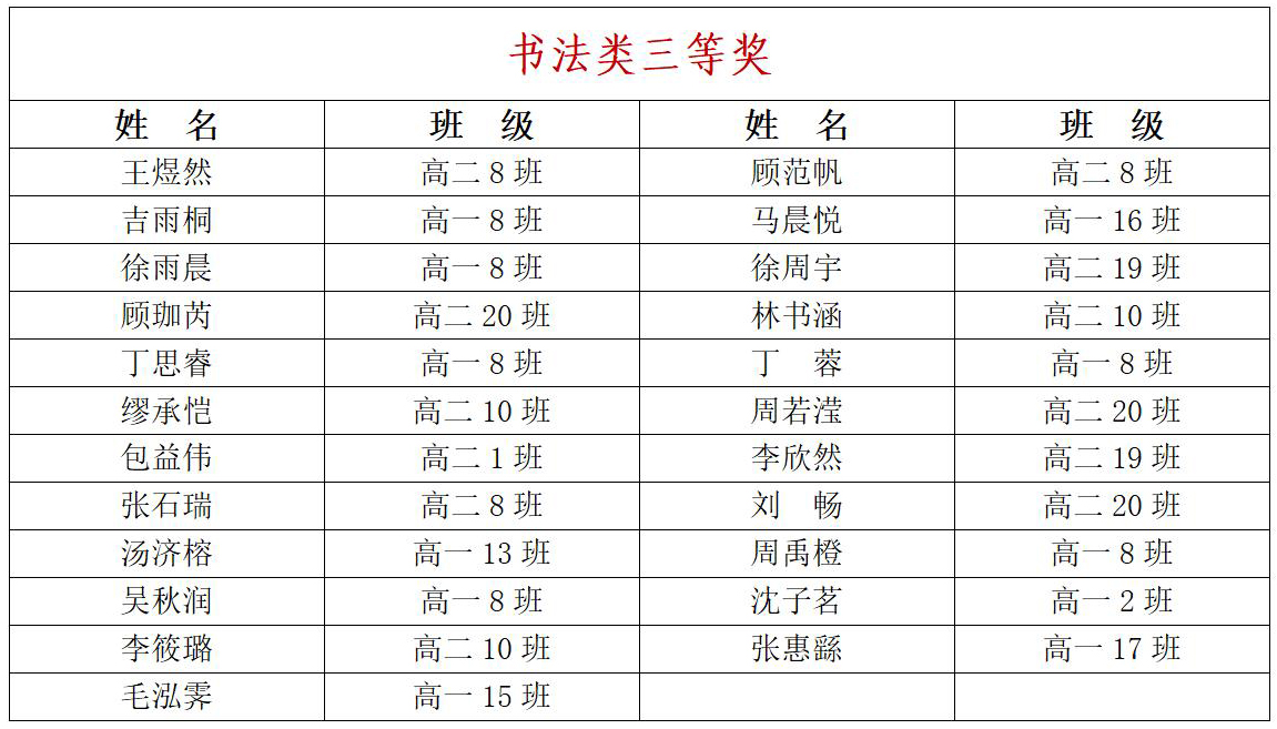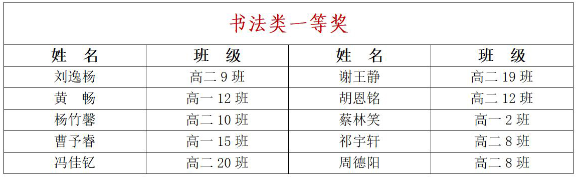 在美术组教师的精心策划下,全校学生积极参与,共收到书法、绘画作品150多幅。经过评委老师们的认真评选,最后共选出书法类一等奖10名,二等奖12名,三等奖23名;绘画类一等奖10名,二等奖9名,三等奖5名。获奖作品将在学生艺术中心展出。