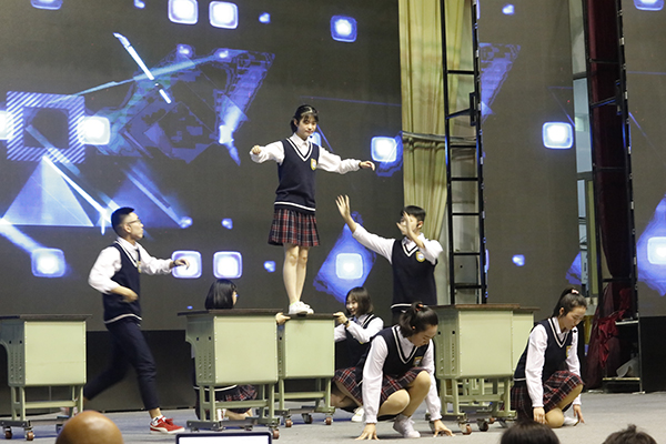 中午,各联盟学校的带队领导和学生演员陆续抵达海中体艺馆。换装,化妆,走台……同学们有条不紊,紧张有序,为下午的“春满校园�情系青春”心理健康教育主题活动做最后的准备。3:40,活动准时拉开帷幕。南通市教育科学研究院心理学科教研员符小斌老师、海安县教育局中教科谢玉平科长、各联盟学校德育领导、我校吕建校长、杨斌、董裕华副校长、工会吴明山主席、高一年级全体师生和部分家长代表出席此次活动。首先,副校长董裕华代表学校做了精彩致辞,他强调了心理健康教育的重要意义,介绍了学校近些年在心理健康教育方面的实践和成绩。然后,海安中学、曲塘中学、实验中学、李堡中学的同学们依次登台,为大家表演了四部校园心理剧。同学们的表演精彩纷呈,触动人心,现场观众掌声不断。