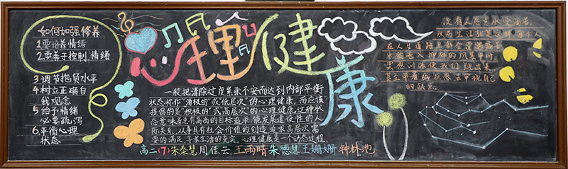 为宣传普及心理健康知识,丰富心理健康教育形式,营造良好的心理健康教育氛围,近日,我校开展了“心理健康”主题黑板报评比活动。经评委老师及各班学生干部代表打分,以下班级获得优胜奖: