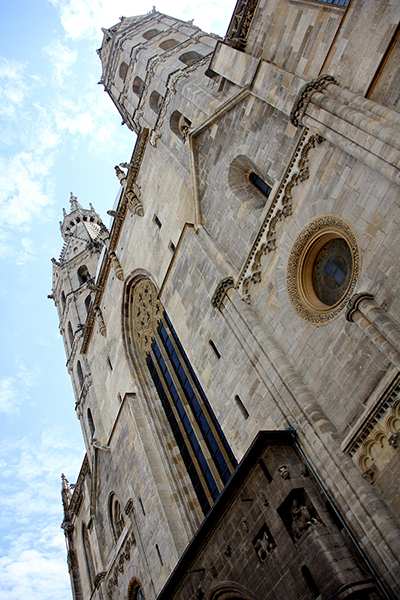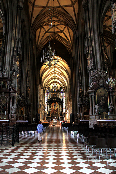 然后我们进入圣史蒂芬大教堂(Stephasdom)参观,它是全世界最著名的哥特式教堂之一,也是维也纳市的标志。圣史蒂芬大教堂建于12世纪,那高高的塔尖高达137米,仅次于德国科隆大教堂。 这座大尖塔的中心尖塔周围环绕着无数精雕细琢的小尖塔,好像一顶光彩夺目的王冠。钟塔每隔一段时间,会发出一阵悠扬的钟声。因其坐落在维也纳市中心,故又以“维也纳之心”称之。