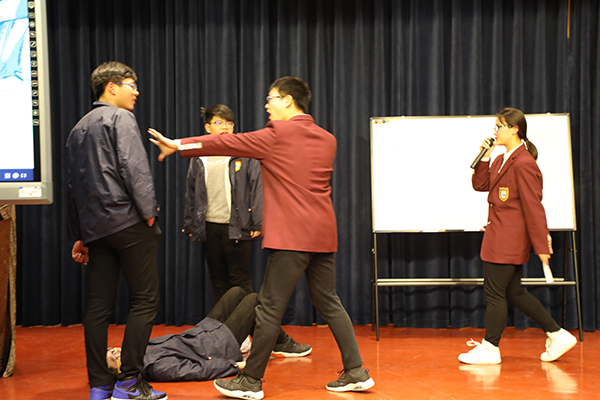 本次班会包括以下几个部分:首先解释了法治的含义;其次阐明了学法懂法的重要性;接着引入了一个严肃的问题——校园欺凌,然后同学们就“事后如何处理”、“如何自保”等问题展开了思考与讨论,互相交换意见;最后,我们号召同学们一起严于律己,遵守三大纪律十项注意,以一曲赞扬炎黄子孙的动听的琵琶独奏曲结束了本节班会。纵观班会,同学们踊跃发言、展示才艺。情景剧和小品紧扣主题,引人发笑的同时也发人深省。提问环节同学们都愿倾听、敢发言。