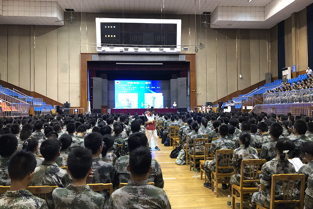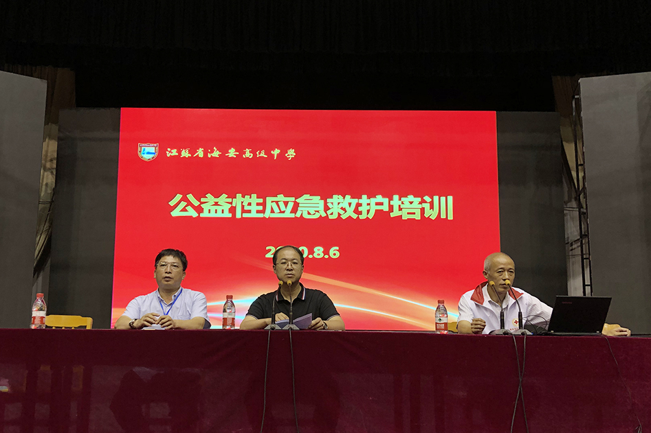 为了让学生了解卫生与救护的基本知识,掌握卫生与救护的基本技能,8月6日晚,江苏省海安高级中学高一军训新生在学校体艺馆参加了市红十字会组织的卫生与救护培训。
