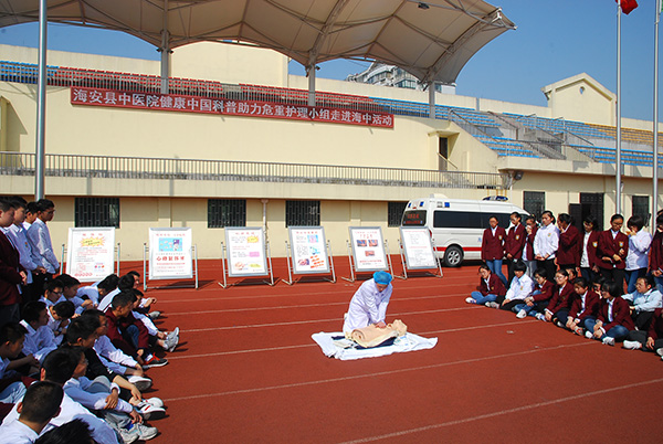 学校健康教育担负着增强学生健康的重任,是全面贯彻教育方针,对学生实施素质教育的重要途径,它对促进学生德、智、体全面发展,提高身心健康水平,具有十分重要的意义。学校重视健康教育,不仅注意把健康教育与学生习惯养成教育相结合,注重行为和习惯的培养,而且注重把健康教育与学科教学紧密结合,更注重通过挖掘校内外的教育资源,采取多种形式对学生进行教育。2017年5月10日海安县中医院急诊急救、危重症护理小组以“健康中国,科普助力”为主题,举办了一场别开生面的健康教育讲座,讲座上中医院的相关专家为广大师生讲解了心脏复苏等危重病症及时处置的相关知识,赢得了师生的一致好评。通过这次讲座不仅使广大师生认识到了医务人员的辛苦,而且也提高了自身的疾病防范能力,增强了健康意识。