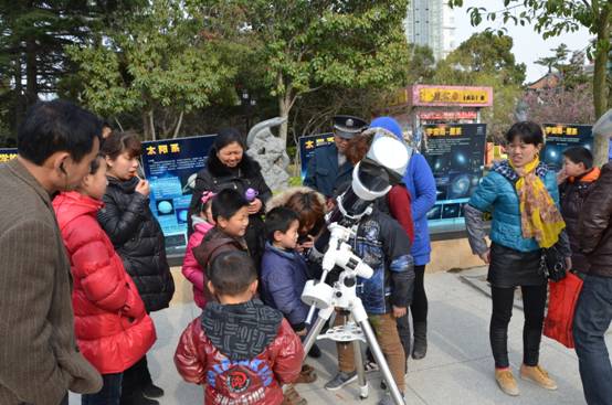 学雷锋日过去了,我们仍在继续。310日下午,天文社的同学们来到海陵公园进行学雷锋科普志愿服务活动,吸引了大量市民。小科学爱好者们兴致勃勃地给市民讲解宇宙的结构与形成,教小朋友们操作天文望远镜观测太阳黑子、解释太阳黑子成因。一位老大爷惊讶不已,“原来天上是这个样子啊。海中的这些伢儿样样行”。