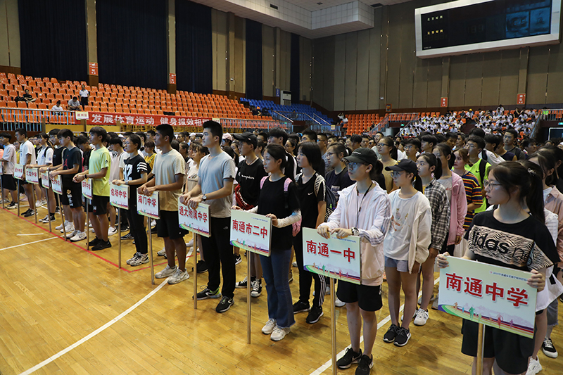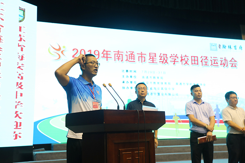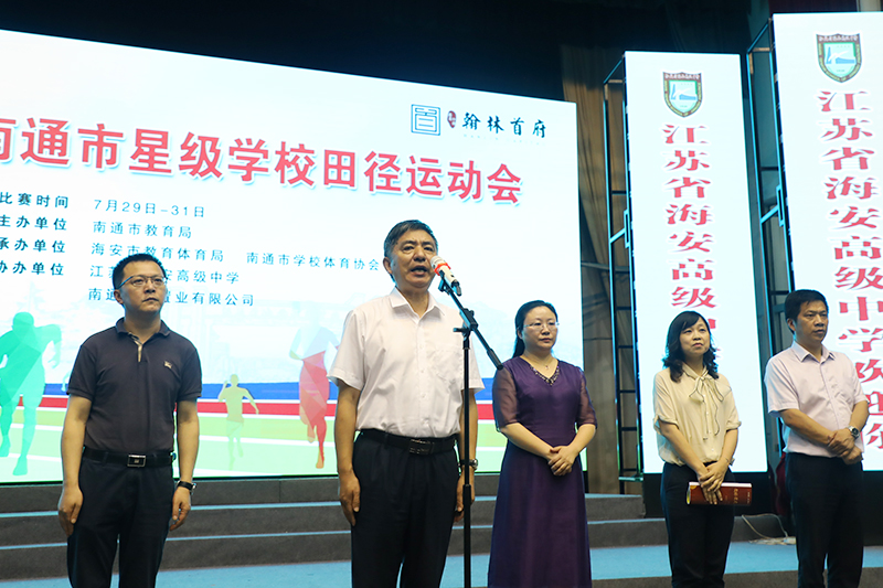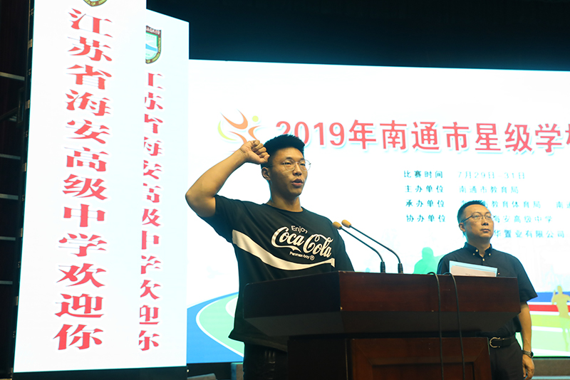 7月29日下午,2019年南通市星级高中田径运动会开幕式在江苏省海安高级中学体艺馆隆重举行。
