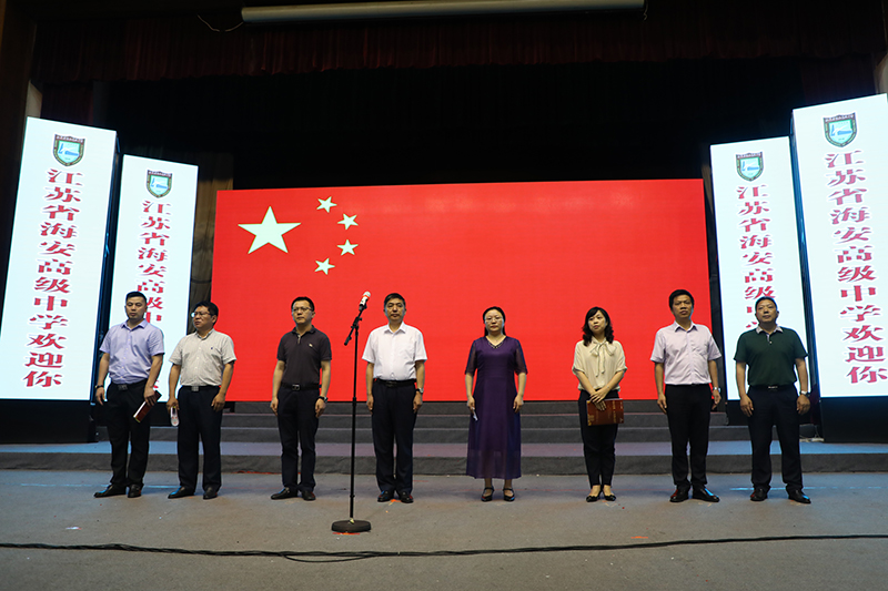 莅临本次运动会开幕式的领导有南通市教育局副局长杨立荣、海安市教育体育局局长章晓丽、南通市教育局基教处处长陈斌、南通市教育局体卫艺处处长张翊翔、南通市教育局高职处副处长李维、江苏省海安高级中学副校长董裕华、南通港华置业有限公司副总经理刘忠华、本届运动会赛事主管国家级裁判任学明。开幕式由海安教育体育局副局长颜敏主持。运动会裁判员、工作人员、志愿者以及南通市星级高中学校领导、带队老师和运动员参加了开幕式。