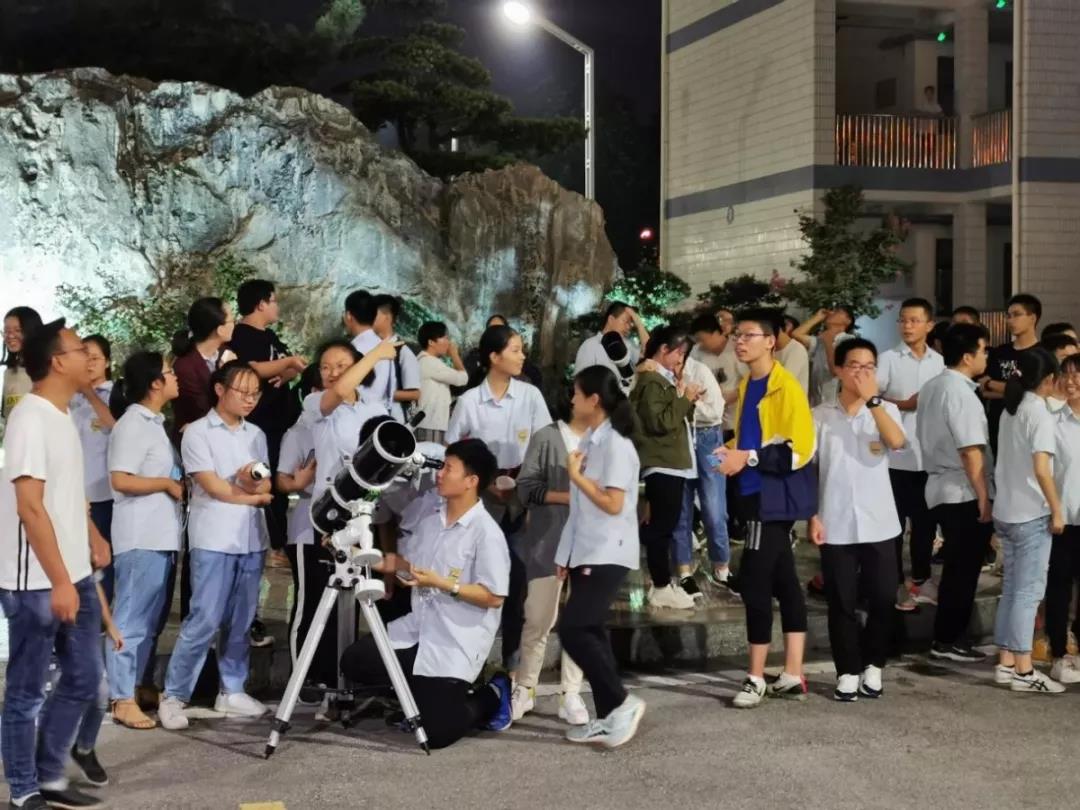海安中学天文社开展中秋赏月校园科普活动 来源: 发布时间:2019-09-16 00:00:00 浏览次数: 次 【字体:小 大】 9月12日晚,江苏省海安高级中学天文社在山石广场和操场开展了中秋赏月科普活动,吸引了众多师生、家长和市民的热情参与。在天文社同学的指导下,大家学习使用星空软件Stellarium查看实时星图,并利用天文望远镜观测了月球地貌,同时观测到了木星的大气条纹和木星的多颗卫星,也观测到了美丽壮观的土星环。 分享到: 【打印正文】