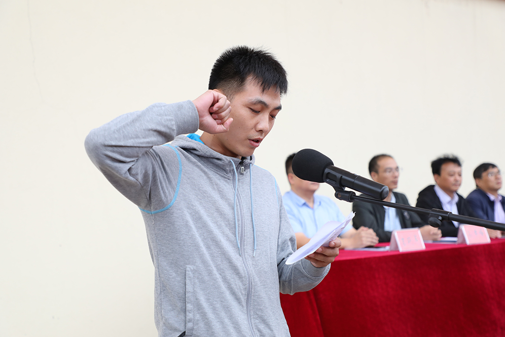 运动员代表王雨彤和裁判员代表卢从生分别代表全体运动员和裁判员宣誓。