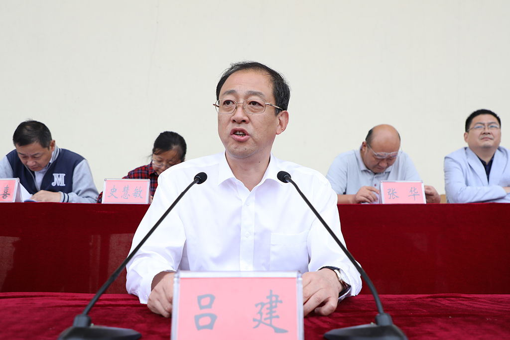 吕建校长代表学校党委、校长室,对运动会的召开表示热烈的祝贺;向为本届运动会的筹备工作付出辛勤劳动的学校德育处、总务处、体育组全体老师、各班班主任和体育委员等表示衷心的感谢。吕校长指出:运动是一切生命的本源,它是让我们协调、大方、优美的行为艺术;也是带给我们健康、快乐、舒适的生活财富;更是赋予我们勇敢、果断、坚毅的力量源泉。“国运昌,体育兴”。体育强盛的背后是民心的凝聚,国力的增强和社会的进步。学校的体育水平也是学校综合办学实力的反映。举行运动会,强化体育运动,是学校不忘初心,立德树人,大力推行素质教育,活跃校园文化生活的一项重要举措,也是对学生身体素质和竞技才能的一次大考验,更是对海中师生精神面貌和全面发展的一次大检阅。吕校长要求全体运动员、裁判员、老师、同学们明确意义,积极参赛;互助友爱,文明比赛;严密组织,安全有序。确保把本次运动会办成一届有特色、高水平的体育盛会。希望同学们在运动中挑战极限、在运动中超越自我、在运动中体验纯粹、在运动中享受快乐!