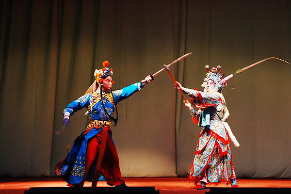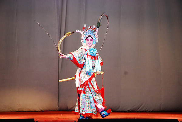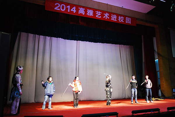 接下来,精彩纷呈:《拾玉镯》华美亮丽的服装,优雅轻盈的舞步,眼波流转的明眸,逼真传神的动作,征服了在场所有观众;《三岔口》通过演员惟妙惟肖的表演,在灯火通明的舞台上表现出漆黑环境中的打斗,将京剧的特征刻画得淋漓尽致;京歌《篱笆墙的影子》让我们感受到了不同于流行歌曲的另一番风韵;《扈家庄》更是让学生们对武旦优美的扮相、飒爽的英姿、纯属的技艺赞不绝口;艺术家们还应观众的强烈要求,加演了京剧经典曲目《打虎上山》,身临其境地体验了英雄人物杨子荣的壮志豪情。