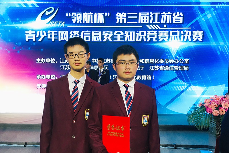 海安中学两名同学获省网络信息安全知识竞赛一等奖