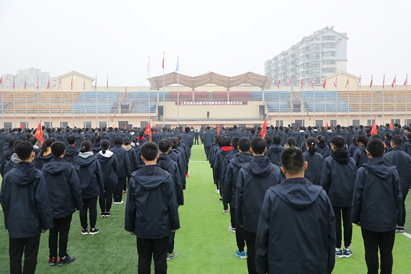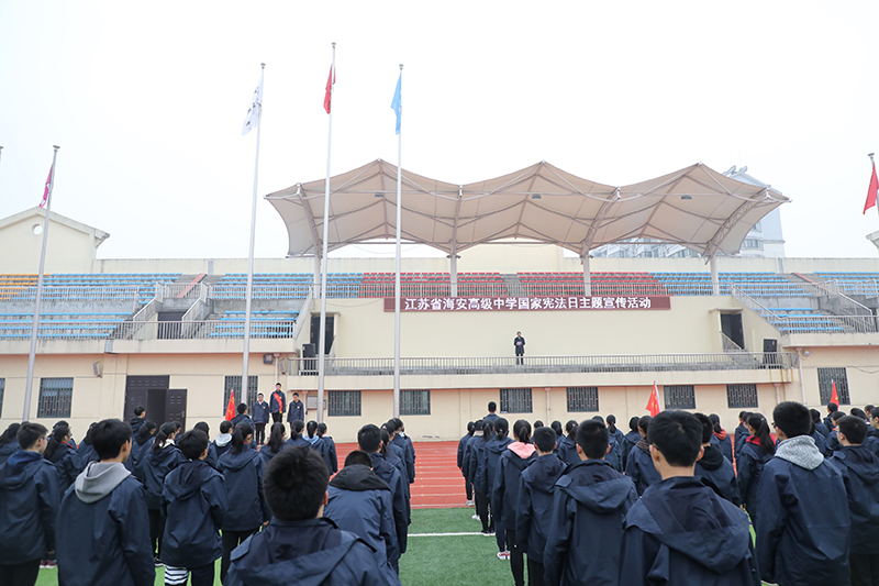 123日上午,海安高级中学全体师生在大操场举行国家宪法日主题宣传活动。学校副校长吴明山带领师生朗读了宪法的重要部分。