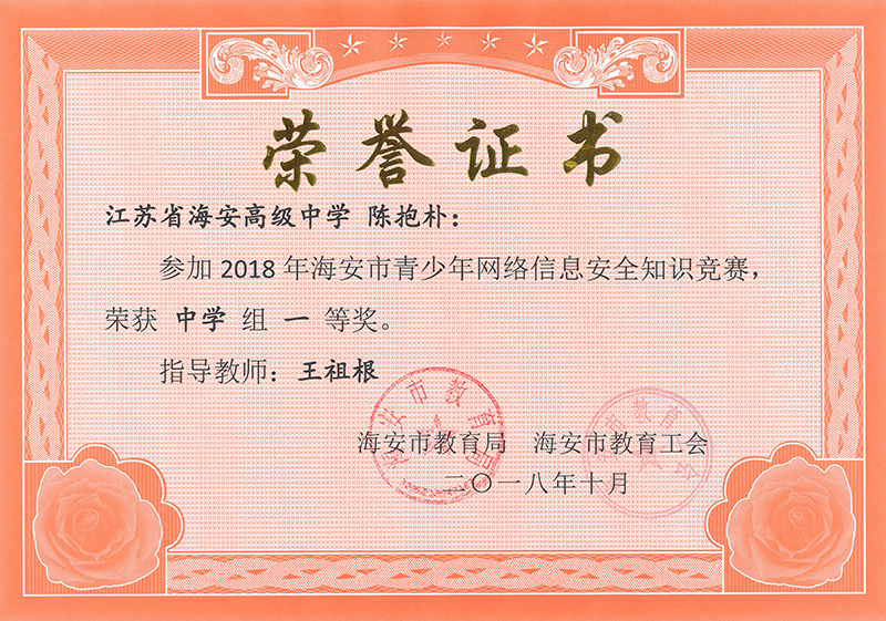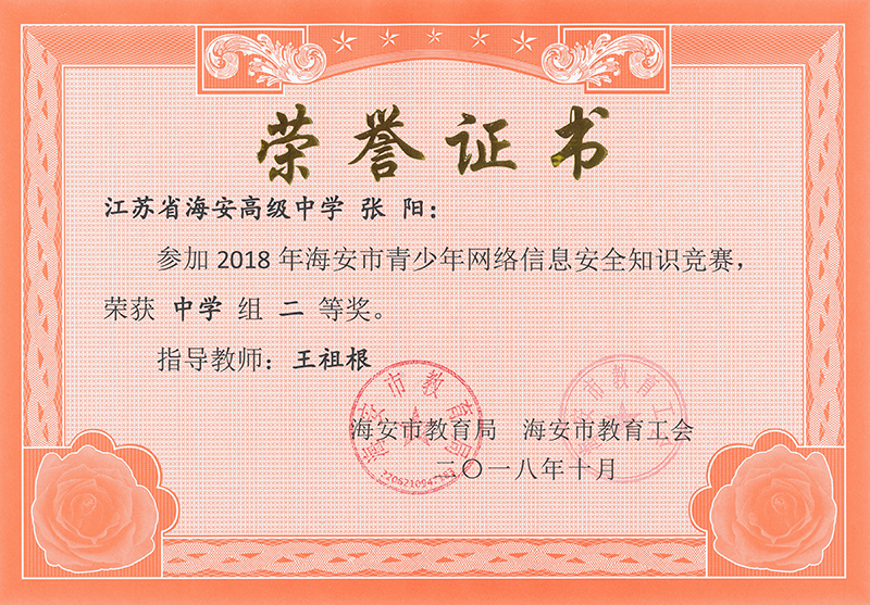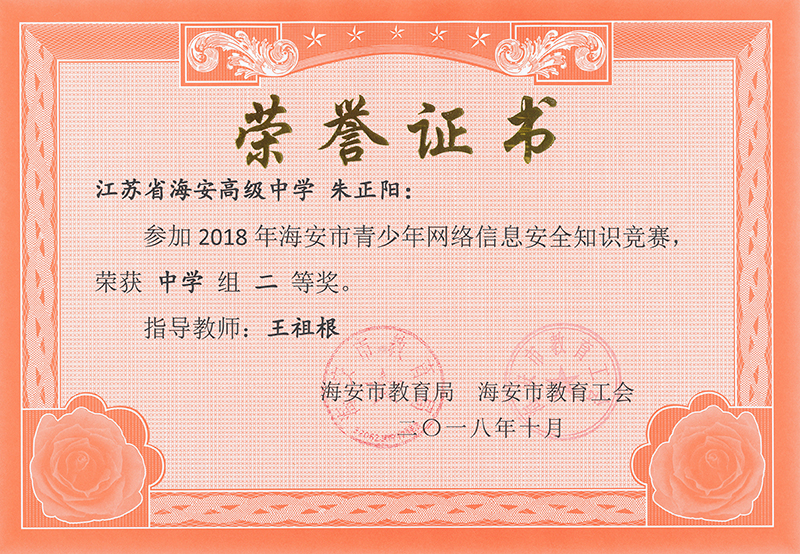 海安市青少年网络信息安全知识竞赛,我校多名同学获一、二等奖