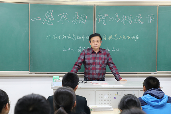 49日晚,宿管部吉传铁主任在3号楼一楼教室为2018级创新实验班进行了题为“一屋不扫,何以扫天下”的宿舍规范条例与生活自我管理讲座,参加讲座的还有教务处周峰主任、班主任季真老师、许尧老师。