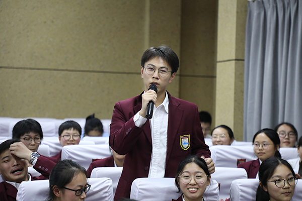 5月13日晚,高二13班的同学们在博雅小剧场举行了《做情绪的舵手》主题班会。学校安保处副主任胡小进、班主任于勇老师、部分家长代表及各班学生代表观摩了本次主题班会活动。