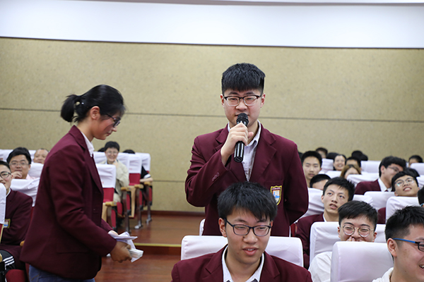 5月20日晚,高二(1)班的同学们在奥林匹克楼博雅小剧场开展了“尊重生命”主题班会活动。教务处副主任张锋、班主任崔光明老师、部分家长代表及各班学生代表观摩了本次主题班会活动。