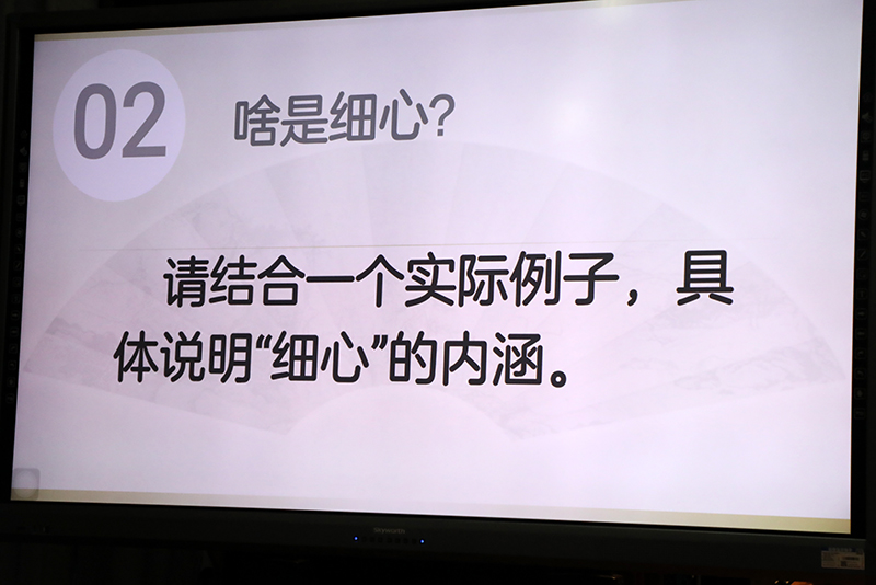 临近尾声,同学们结合具体案例,作出总结:细心是一种人生态度,影响人的一生。且细心是可以通过反复练习获得的。所以,同学们更应找到培养细心的方法和路径。