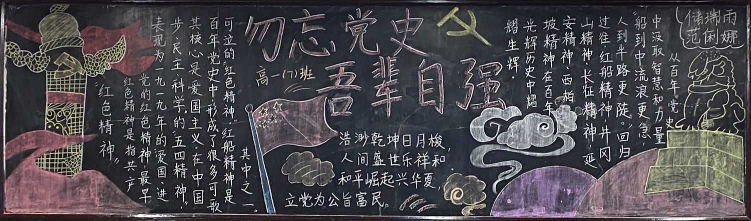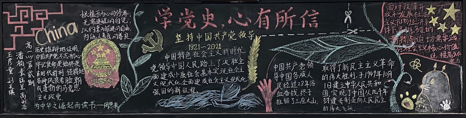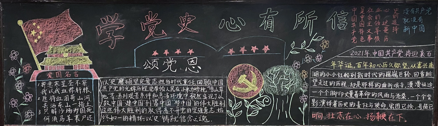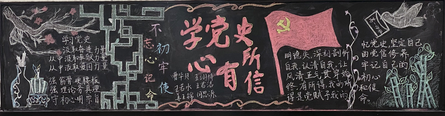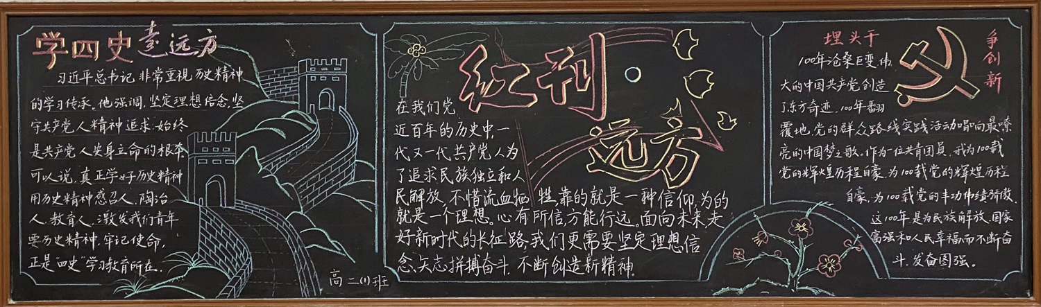活动期间,各班学习小组紧紧围绕主题搜集材料,精心编排,板报内容丰富,主题突出,图文并茂,布局美观。一幅幅画面精美、内容充实的板报作品,汇集了各班学生的集体智慧,锻炼了他们学习实践的能力,也激发了大家学习党史的热情。