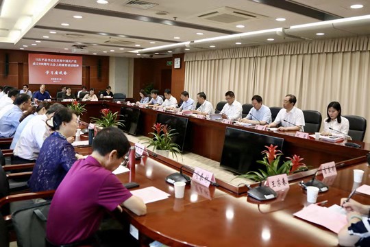 葛道凯指出,学习贯彻习近平总书记系列重要讲话精神,要深刻把握“江山就是人民,人民就是江山”,坚持教育为人民服务,践行中国共产党全心全意为人民服务的根本宗旨;要深入研究新发展阶段的主要矛盾,以教育改革激活力、增动力,为中华民族伟大复兴贡献教育智慧;要深刻领悟伟大建党精神是中国共产党走向未来的根本遵循,落实立德树人根本任务,在“为党育人、为国育才”中,让建党精神代代相传,发扬光大。