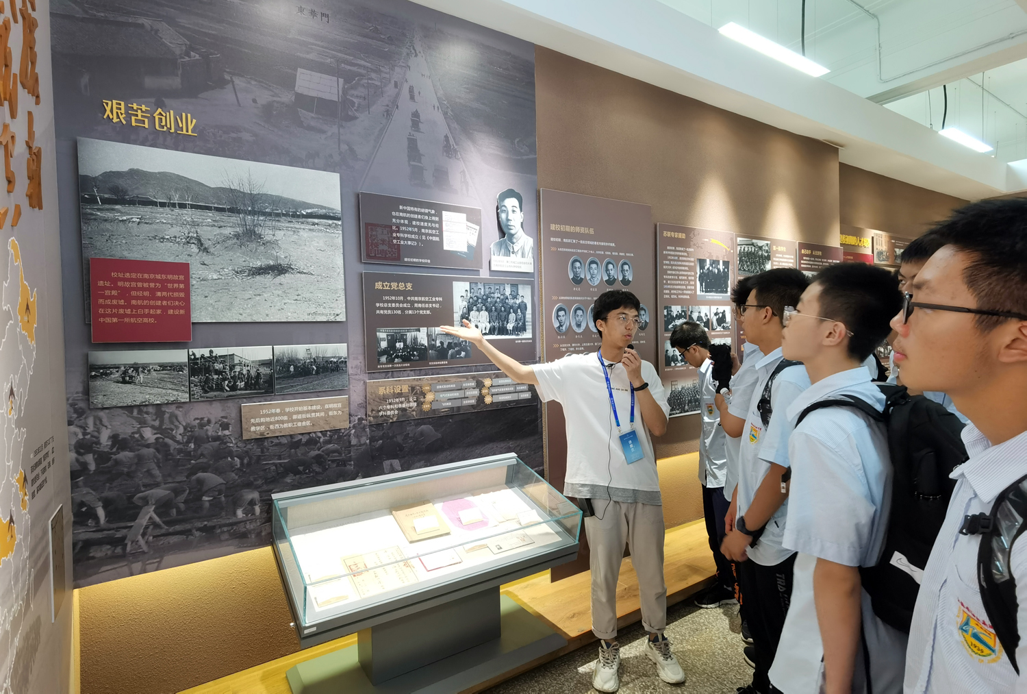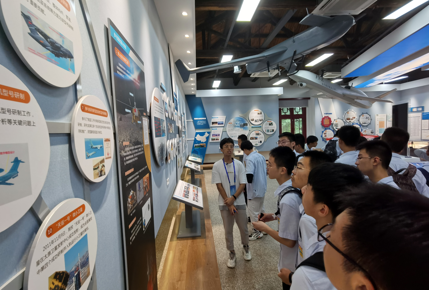 走进校史馆,面对嫦娥奔月的壁画,面对详实的史料,同学们不仅了解了一个学校的奋斗史和辉煌史,更见证了一个民族永不放弃的飞天梦,而校歌《志在长空牧群星》,也让同学们进一步理解了飞天梦实现的背后,“越重关,秉琴心剑胆,御风行”的青春力量和青年担当。