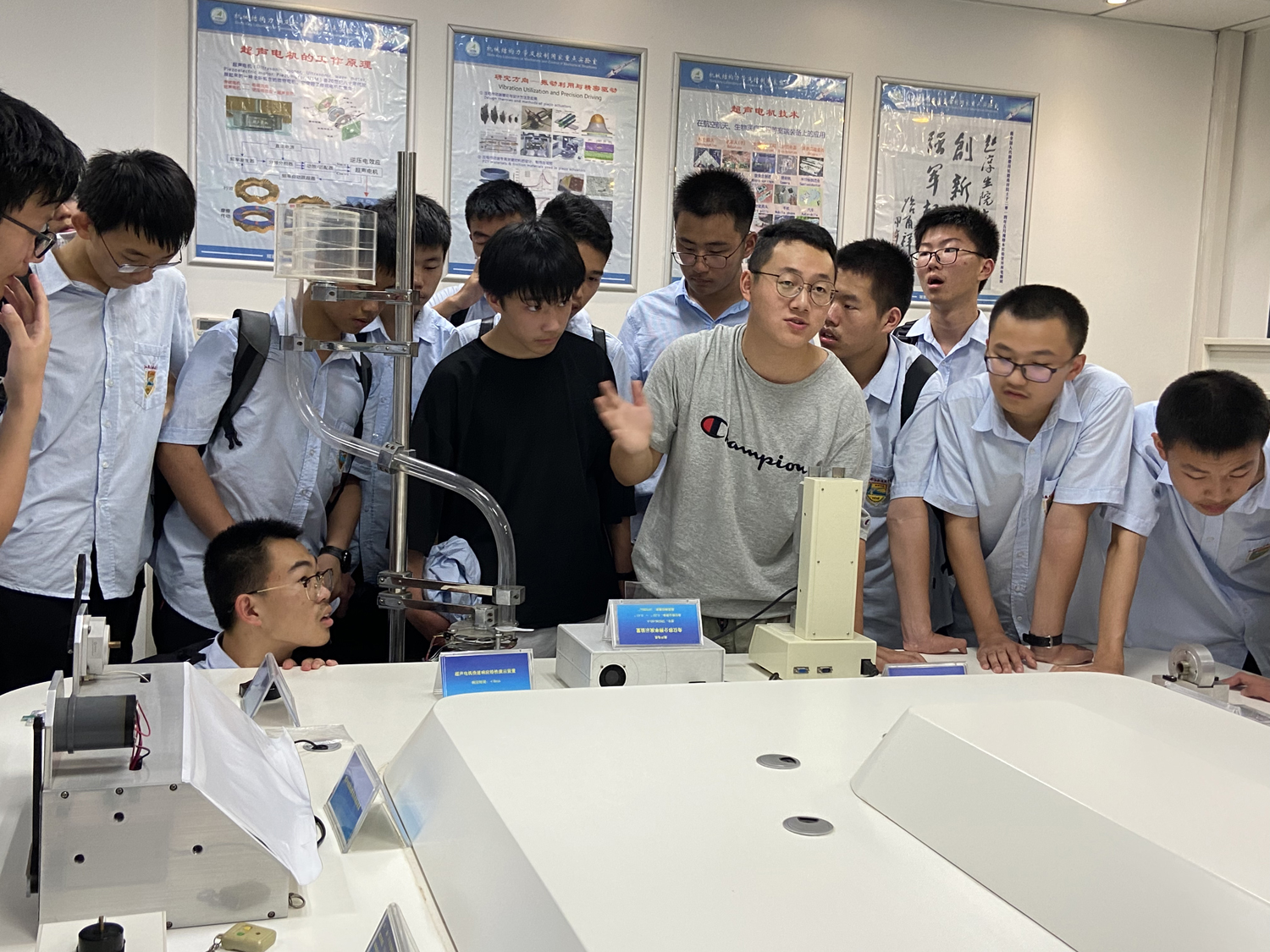 在机械结构力学及控制国家重点实验室里,同学们看到了新型材料的研制成果,也仔细观察了各种自主研发的发动机,其中有一些发动机被用于“天宫一号”“嫦娥五号”之中,同学们与中国航天的伟大成就实现了零距离的接触,同时,也将科学使命,时代追求植入了自己的心灵。
